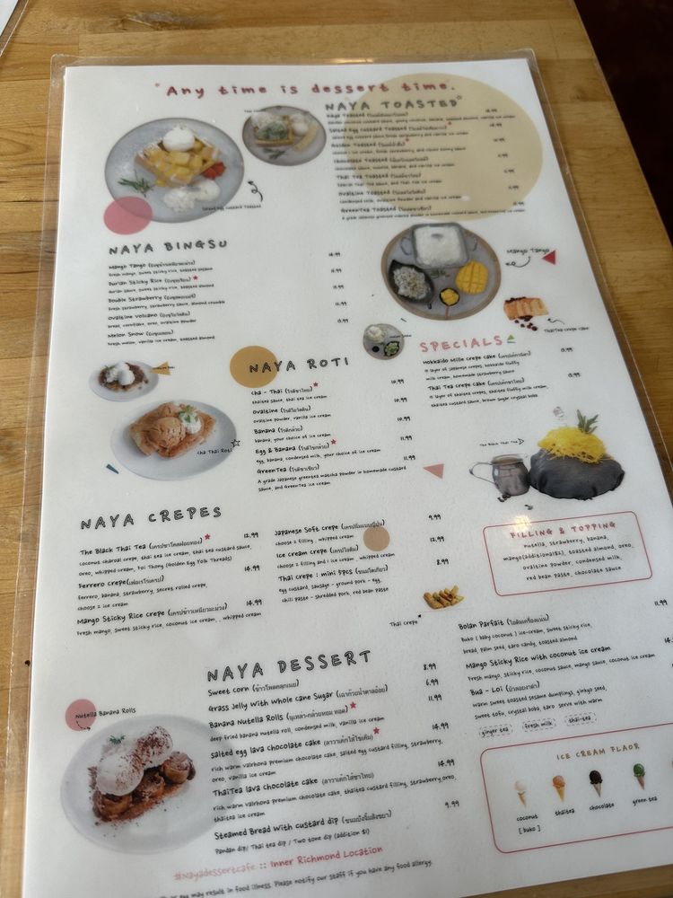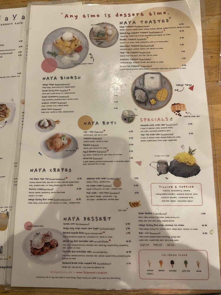 NaYa Dessert Cafe Menu (Update 2025)